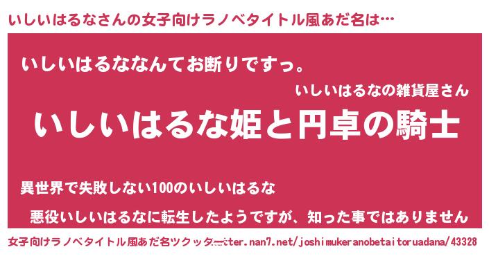 | 男性向けラノベタイトル風あだ名 | 『いしいはるなの憂鬱』 |