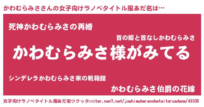 | 男性向けラノベタイトル風あだ名 | 『かわむらみさの嫁は女の子じゃないと思った?』 |
