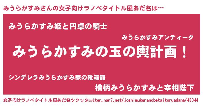 | 男性向けラノベタイトル風あだ名 | 『転生したらみうらかすみだった件』 |