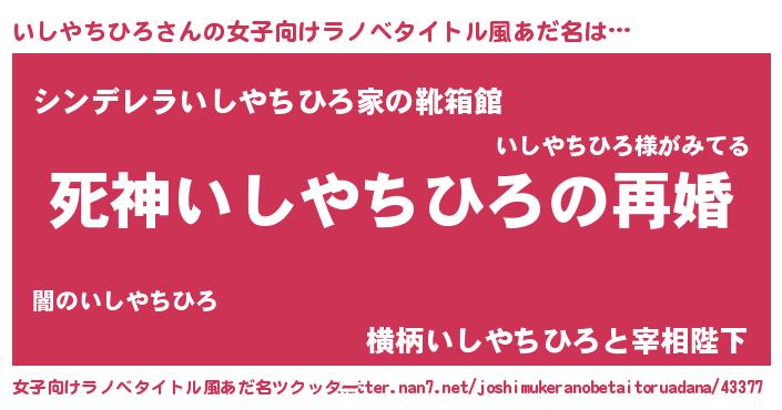 | 男性向けラノベタイトル風あだ名 | 『ノーゲーム・ノーイシヤチヒロ』 |
