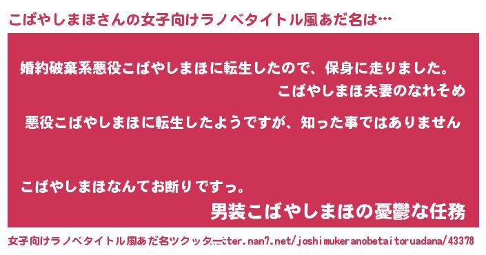 | 意味不明あだ名 | 『住所不定無職こばやしまほ(39歳)』 |
