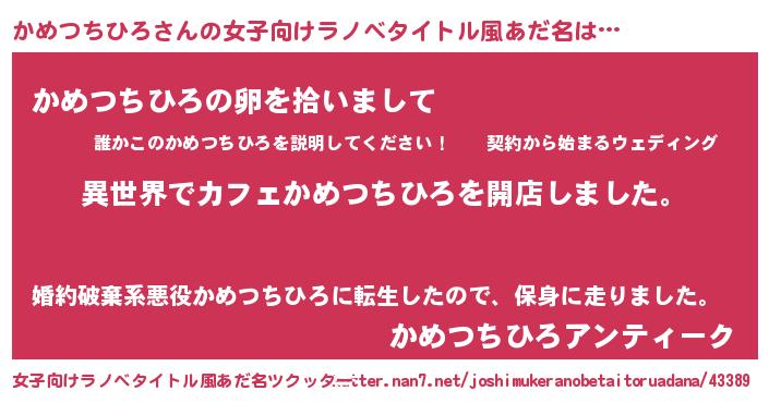 | 男性向けラノベタイトル風あだ名 | 『誰もが恐れるあのかめつちひろが、ぼくの専属メイドになるようです。』 |