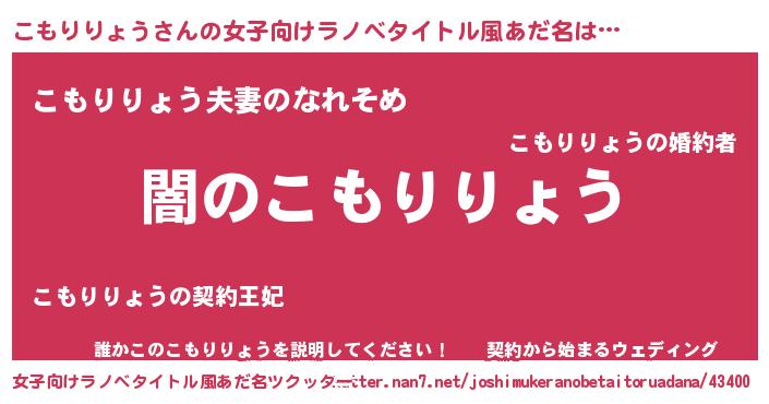 | 意味不明あだ名 | 『自称こもりりょう』 |