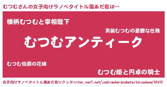 | 男性向けラノベタイトル風あだ名 | 『魔法科高校のむつむ』 |