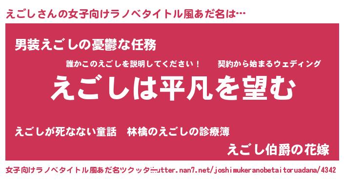 | ヘコむあだ名 | 『えごっ子』『酢こんぶ』『えごもー』 |