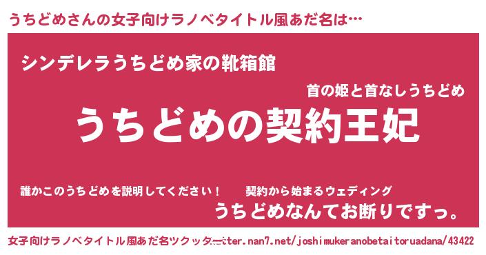 | 胡散臭い通販商品みたいなあだ名 | 『来世でも幸せになれる健康食品…その名も「うちどめ」』 |
