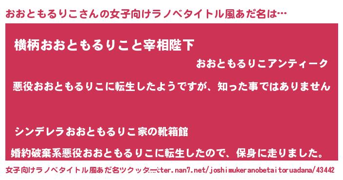 | 意味不明あだ名 | 『住所不定無職おおともるりこ(84歳)』 |