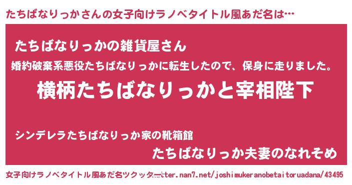 男性向けラノベタイトル風あだ名 | 『たちばなりっかに滅ぼされるだけの簡単なお仕事です』 |