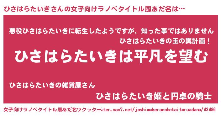 | 胡散臭い通販商品みたいなあだ名 | 『信頼と実績のサプリメント…その名も「ひさはらたいき」』 |