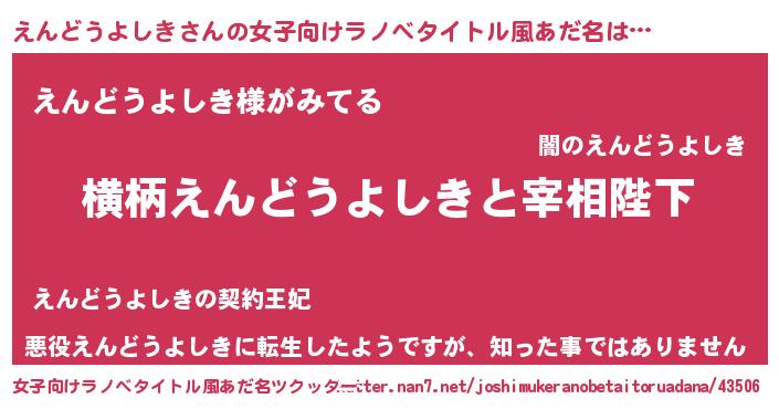 | 男性向けラノベタイトル風あだ名 | 『えんどうよしきに滅ぼされるだけの簡単なお仕事です』 |