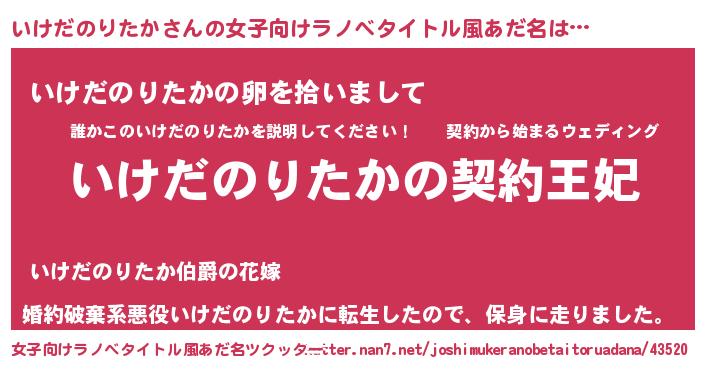 | 胡散臭い通販商品みたいなあだ名 | 『来世でも幸せになれる健康食品…その名も「いけだのりたか」』 |