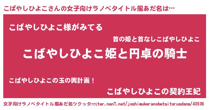 | 男性向けラノベタイトル風あだ名 | 『こばやしひよこの憂鬱』 |