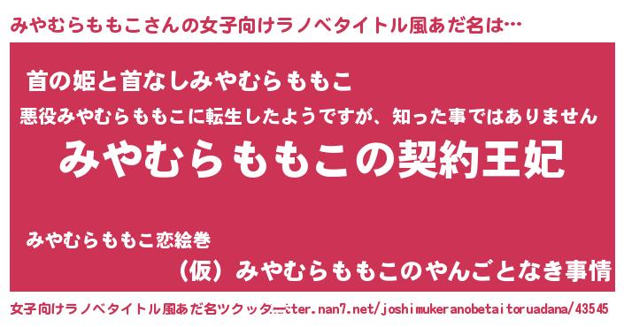 | 男性向けラノベタイトル風あだ名 | 『誰もが恐れるあのみやむらももこが、ぼくの専属メイドになるようです。』 |