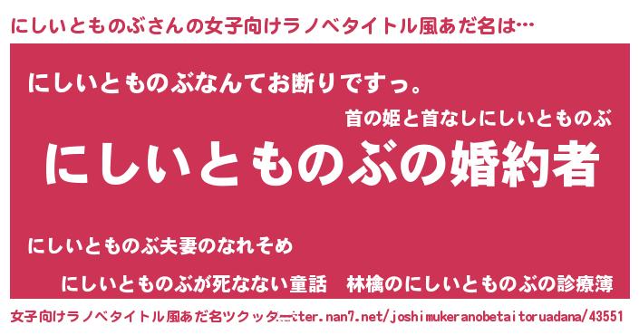 | 肩書あだ名 | 『にしいとものぶ国家主席』 |