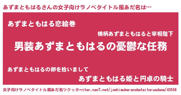 | 男性向けラノベタイトル風あだ名 | 『冴えないあずまともはるの育てかた』 |