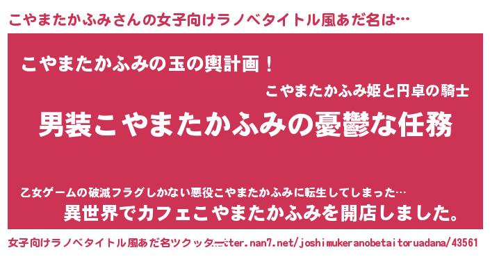 | 男性向けラノベタイトル風あだ名 | 『うちのこやまたかふみが世界を掌握している!』 |
