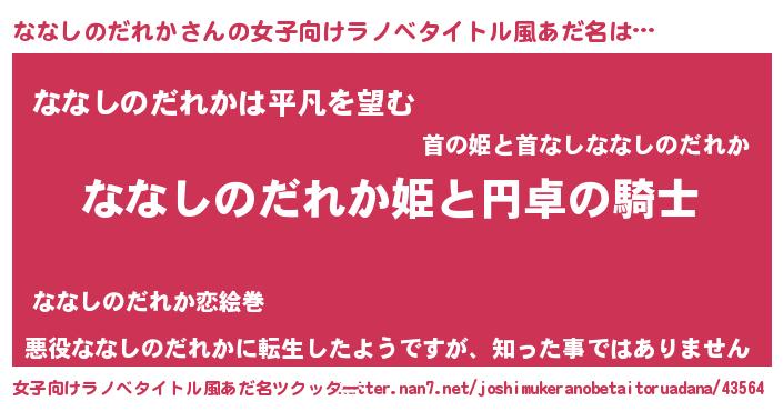 | 胡散臭い通販商品みたいなあだ名 | 『モテモテ間違いなしブレスレット…その名も「ななしのだれか」』 |