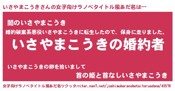 | ファンタジー風あだ名 | 『エターナルイサヤマコウキー』 |