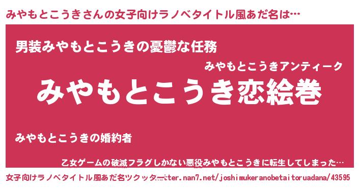 | 男性向けラノベタイトル風あだ名 | 『ノーゲーム・ノーミヤモトコウキ』 |
