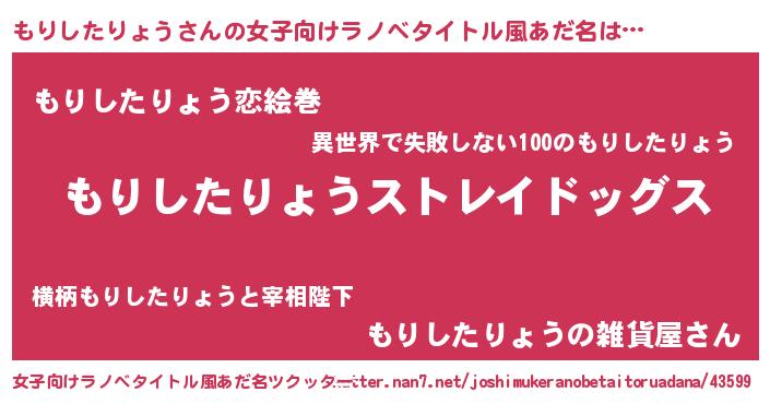 | 男性向けラノベタイトル風あだ名 | 『Re:もりしたりょうから始める異世界生活』 |