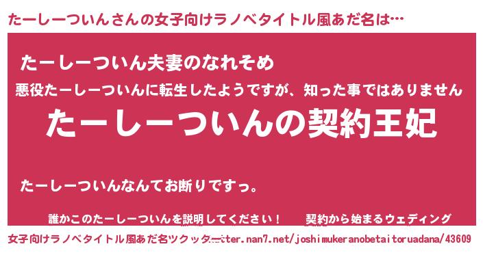 | ヘコむあだ名 | 『たーしーついん(震え声)』『たーっふぃ~』 |