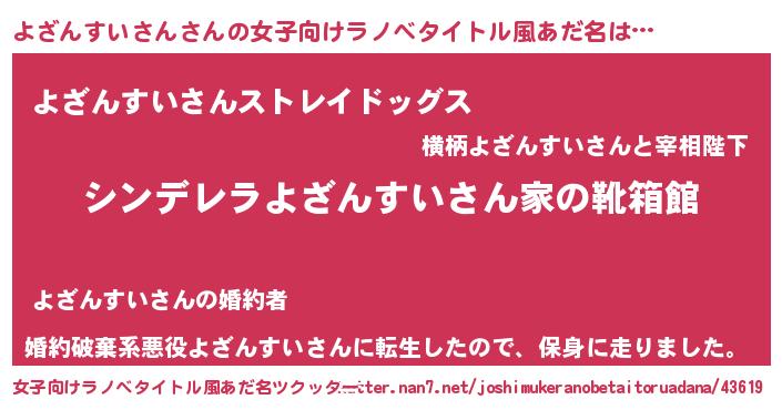 | 男性向けラノベタイトル風あだ名 | 『緋弾のヨザンスイサン』 |