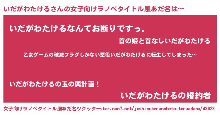 | 男性向けラノベタイトル風あだ名 | 『この素晴らしい世界にいだがわたけるを!』 |
