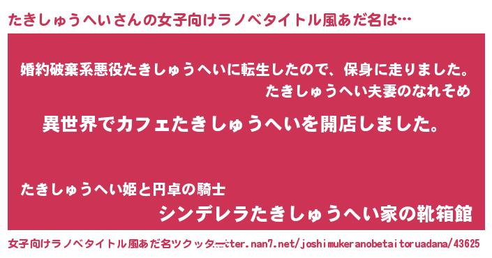| 意味不明あだ名 | 『永久保存たきしゅうへい』 |