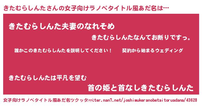 | 男性向けラノベタイトル風あだ名 | 『キタムラシンタアートオンライン』 |