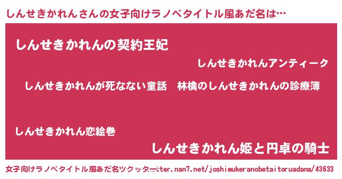 | 意味不明あだ名 | 『住所不定無職しんせきかれん(9歳)』 |