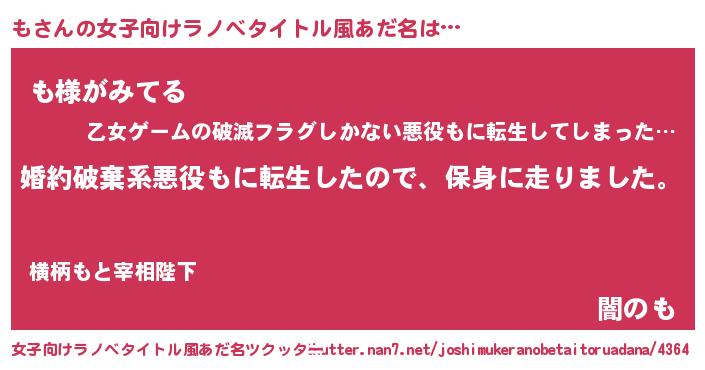 | 男性向けラノベタイトル風あだ名 | 『転生したらもだった件』 |