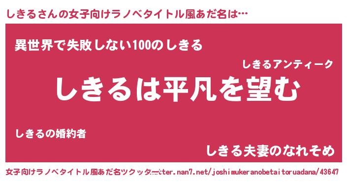 | ヘコむあだ名 | 『しきぷりん』『しきる(笑)』 |