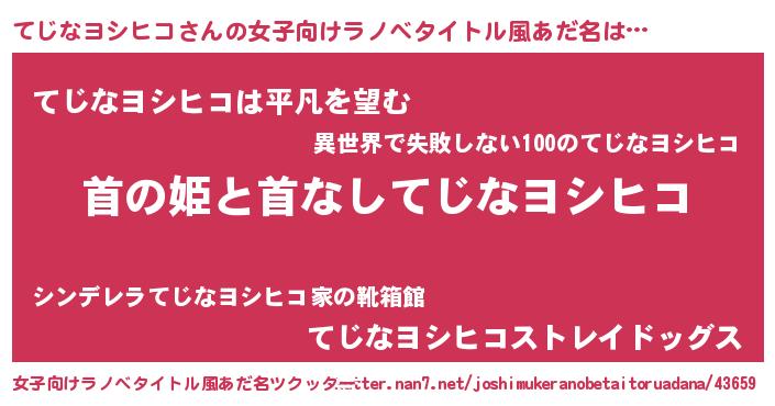 | 男性向けラノベタイトル風あだ名 | 『はたらくてじなヨシヒコさま!』 |