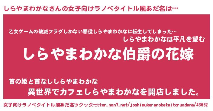 | 胡散臭い通販商品みたいなあだ名 | 『世界が平和になる高級そうな絵画…その名も「しらやまわかな」』 |