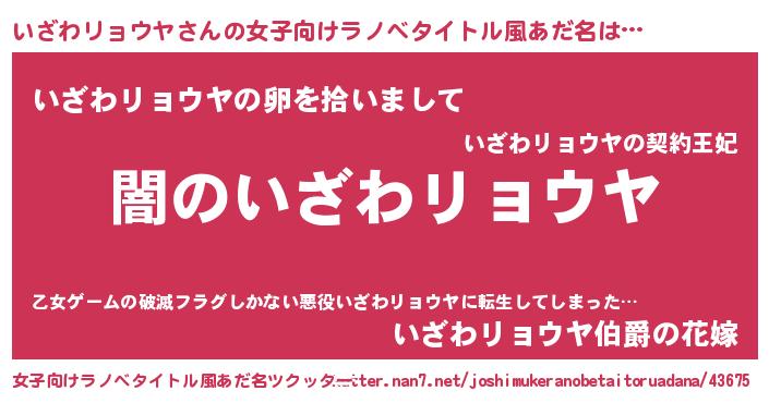 | 男性向けラノベタイトル風あだ名 | 『Re:いざわリョウヤから始める異世界生活』 |