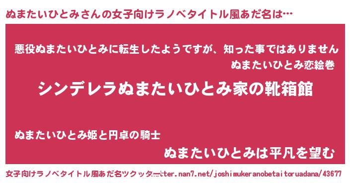| 欧米人風あだ名 | 『ぬまたいひとみ・ステッグマイヤー』 |