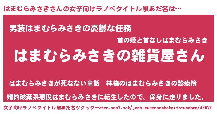 | ファンタジー風あだ名 | 『エターナルハマムラミサキー』 |
