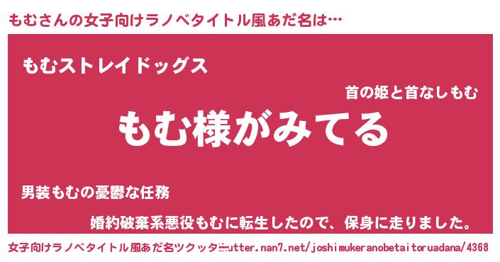 | 意味不明あだ名 | 『とにかく怪しいもむ』『自称もむ』 |