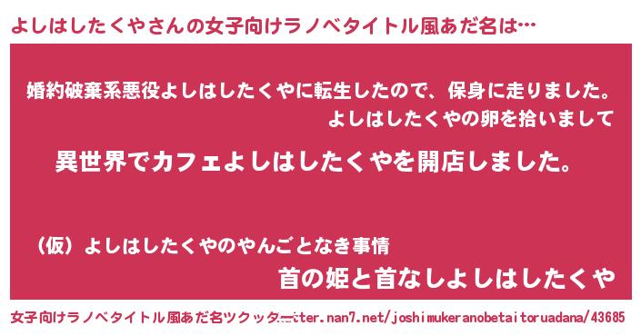 | ファンタジー風あだ名 | 『ヨシディッシュ』『ユリヨシヴァット』 |
