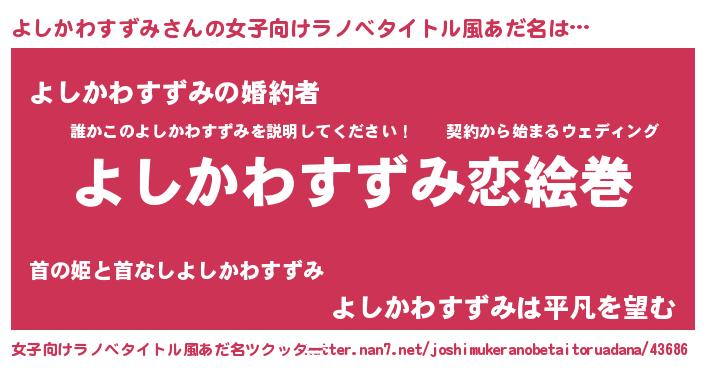 | 男性向けラノベタイトル風あだ名 | 『ノーゲーム・ノーヨシカワスズミ』 |