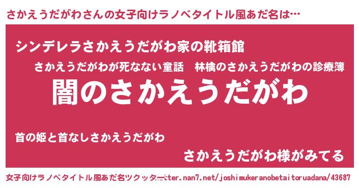 | 男性向けラノベタイトル風あだ名 | 『Re:さかえうだがわから始める異世界生活』 |