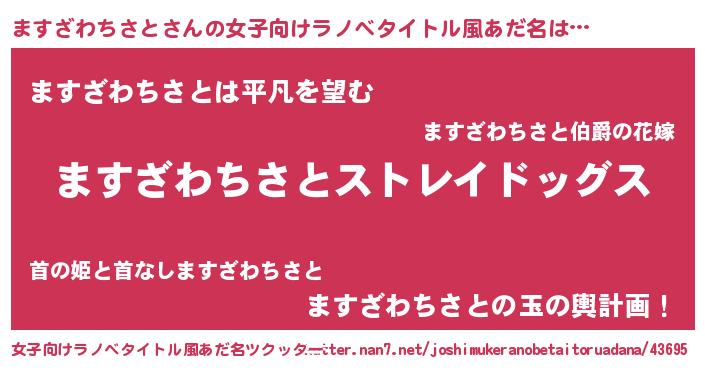 | 男性向けラノベタイトル風あだ名 | 『Re:ますざわちさとから始める異世界生活』 |