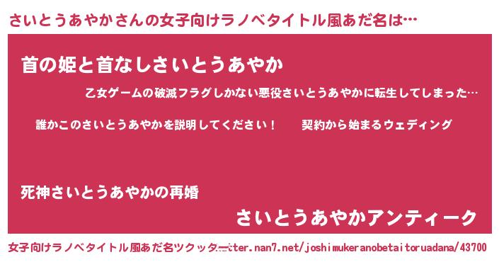 | 肩書あだ名 | 『さいとうあやかCEO』 |