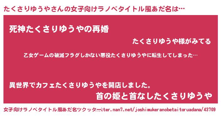 | 胡散臭い通販商品みたいなあだ名 | 『世界中を虜にした100年もののヴィンテージワイン…その名も「たくさりゆうや」』 |