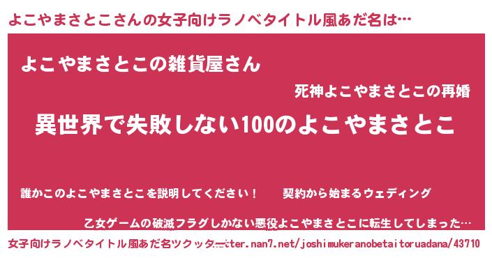 | 男性向けラノベタイトル風あだ名 | 『よこやまさとこという概念が存在しない退屈な世界 』 |