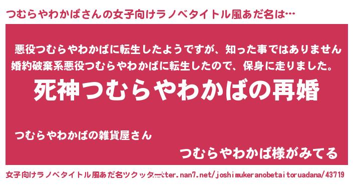 | 男性向けラノベタイトル風あだ名 | 『ノーゲーム・ノーツムラヤワカバ』 |