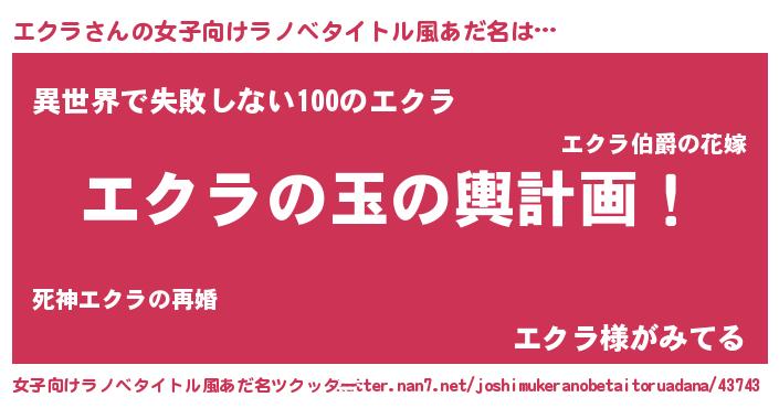 | 胡散臭い通販商品みたいなあだ名 | 『来世でも幸せになれる健康食品…その名も「エクラ」』 |
