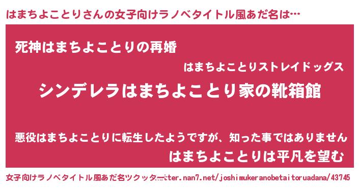 | 意味不明あだ名 | 『眠気覚ましガムはまちよことり味』 |