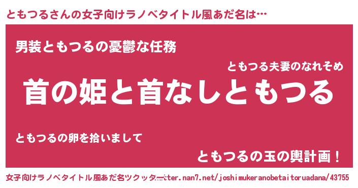 | 男性向けラノベタイトル風あだ名 | 『はたらくともつるさま!』 |