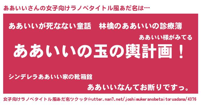 | 胡散臭い通販商品みたいなあだ名 | 『あなたにだけ特別に提供する限定10本のレアな日本酒…その名も「ああいい」』 |